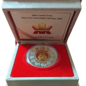 2001 Canada 1 oz Silver Lunar Snake Proof -24K gold gilded