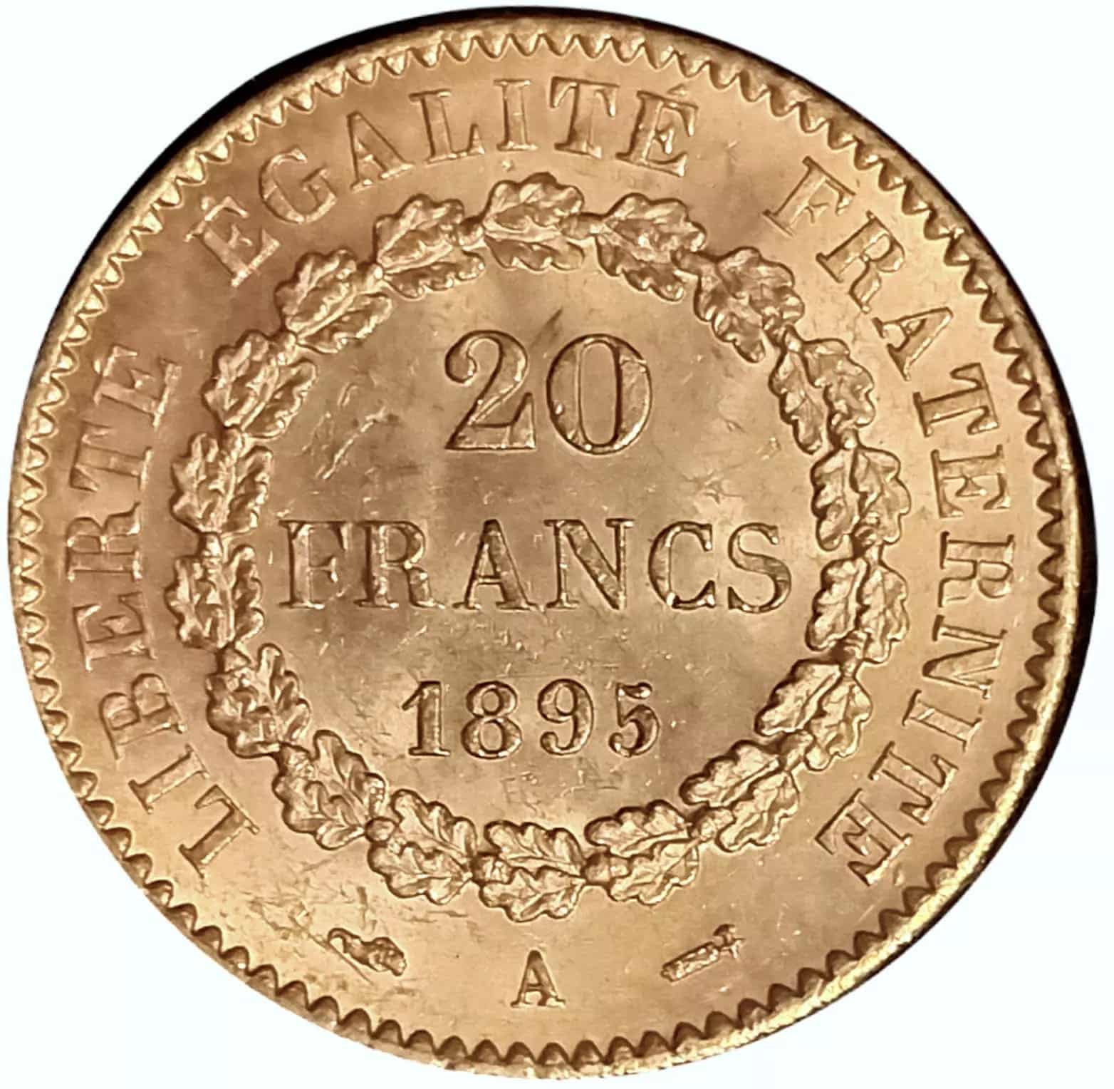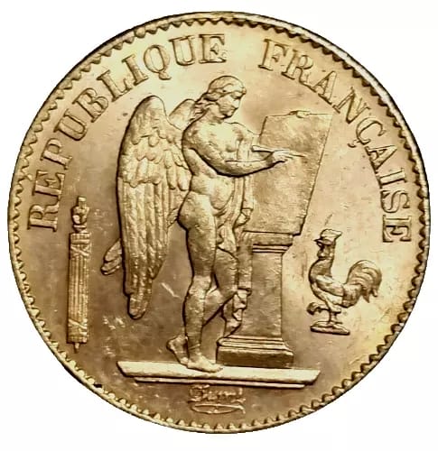 The 20-gold Franc Gold Angel coin was created in 1792 by Augustine Dupree. The gold Angel was first issued for just 2 years in 1848 and 1849. It was issued again in 1871 remaining in circulation through 1898.