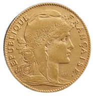 There were three gold francs issued throughout this period. The first was the original Napoleon issued in 1803. It was followed by the gold Angel, which was issued for just 2 years in 1948 and 1949. It was issued again in 1871, remaining in circulation until 1898, when it was replaced by the Marianne Rooster.