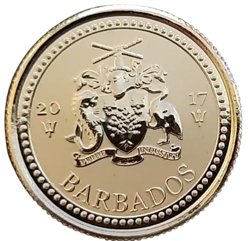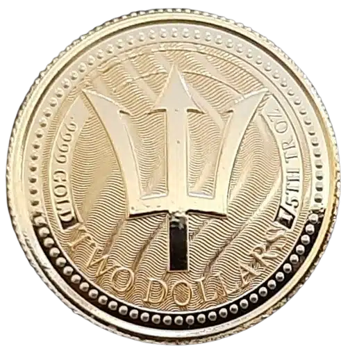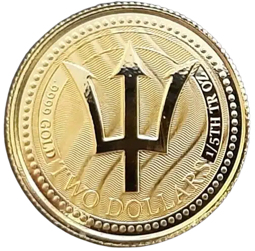 The 2021 Barbados Trident is the fifth year of its release. It’s struck in 1/5 oz of .9999 pure gold. Barbados’ coat of arms is on the obverse. The reverse features the famous Trident head with an ever-changing backfield. A variety of different elements and visual effects are added to the backfield, giving it an entirely new look each year.