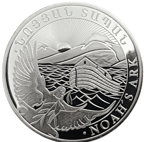 The Noah’s Ark series debuted in 2011 and quickly became a favorite among coin enthusiasts and collectors around the world. The obverse features the Armenian coat of arms along with the national seal of Armenia. The reverse features Noah’s Ark afloat with Mount Ararat in the background.