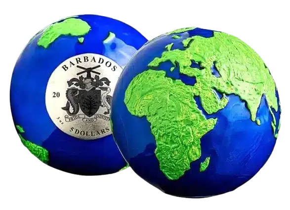 Barbados Spherical Earth Green Planet 3 oz Silver Coin Barbados Spherical Earth Green Planet 3 oz Silver Coin