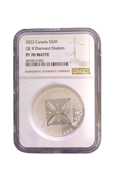 The 2022 Canadian Diamond Diadem is a proof struck in 1 troy ounce of .9999 pure silver. Mintage was set at just 4,500 coins. This remarkable coin is rated PF 70 from NGC