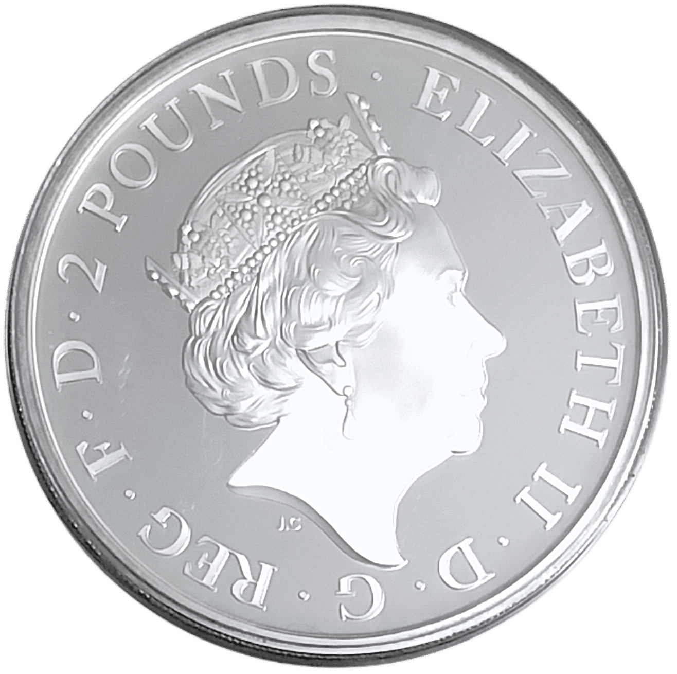 Bears a value of 2 Pound sterling (GBP)