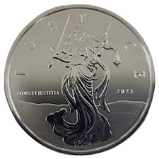 The 2023 Gibraltar Lady Justice coin is minted in 1 Troy oz of .999 fine silver. The coin is produced by Scottsdale Mint, with a limited mintage of 100,000 coins.