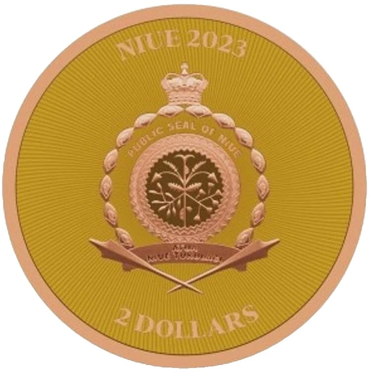 Obverse features Niue Coat of Arms.