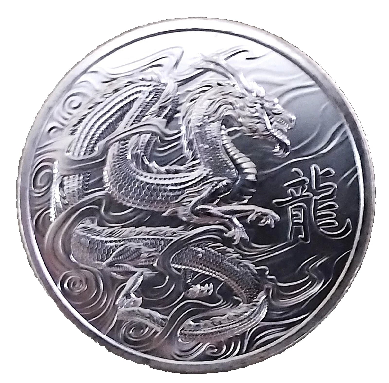 The reverse features a contorted dragon amidst the clouds.