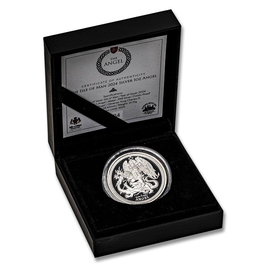The 2024 Silver Angel proof is absolutely stunning. The coin arrives encapsulated and housed in an elegant display box along with an outer sleeve. It also includes a numbered certificate of authenticity.