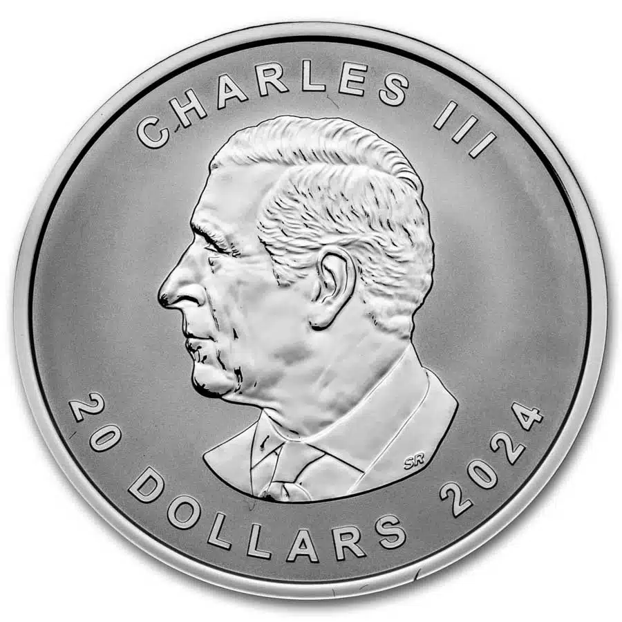 The 2024 Canadian Maple Leaf is proof struck in 1 troy oz. of 9999 pure silver. The obverse side bears the first official portrait of King Charles III.